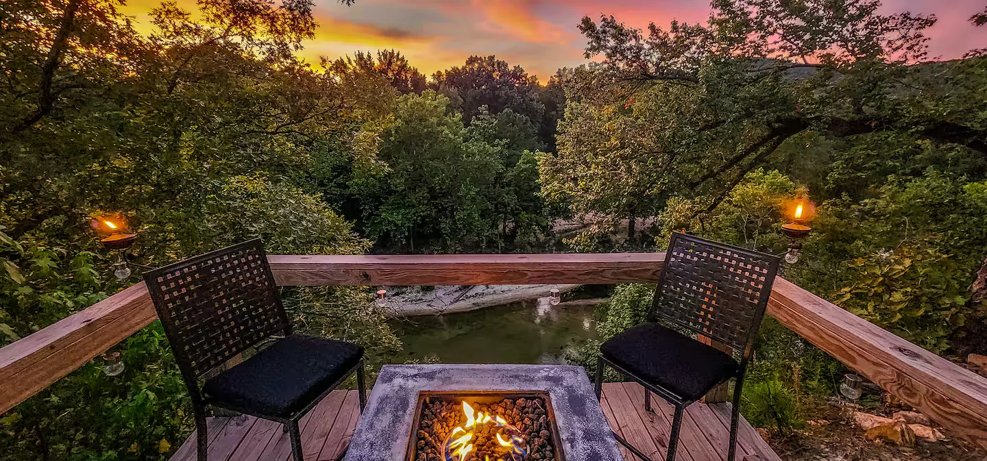 If nature surrounds you is the only thing that your peaceful escape dream is about, then Creekside Haven is the kind of place that helps you to slow down and breathe. A cozy one-bedroom, one-bathroom cabin overlooking a sparkling creek sits high on a cliff. The sound of rushing waterfalls and the beauty of the natural rock formations will take your breath away right from the moment you arrive.