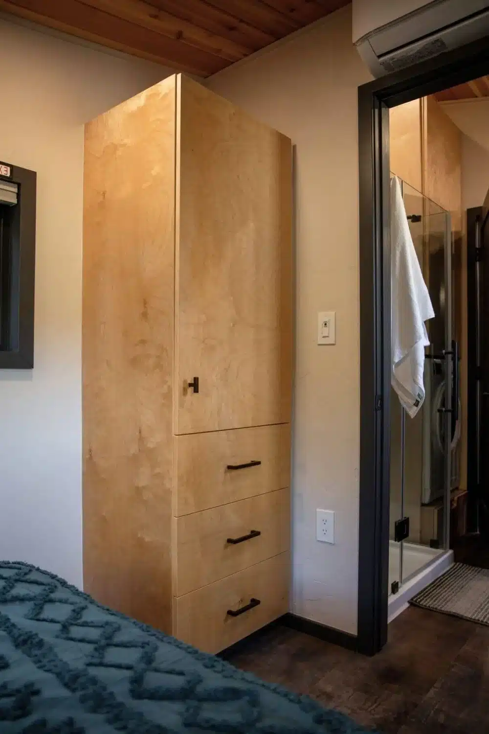 Each person also has their own closet with hanging space and drawers, something you don’t often see in a tiny house.