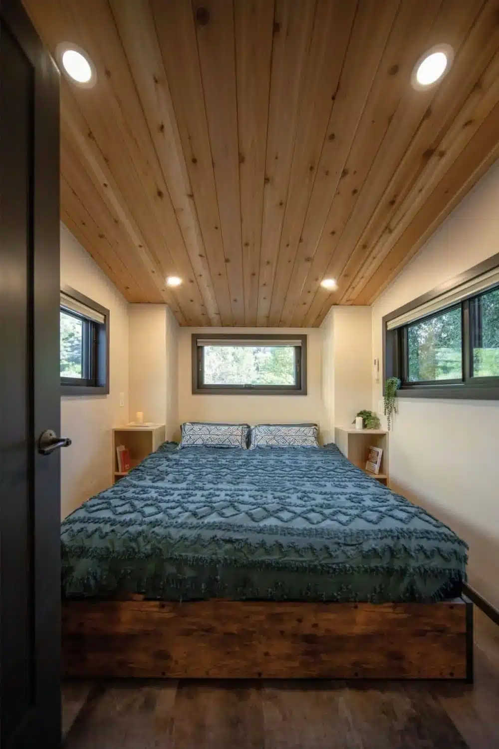 One of the most appealing features of the Adagio tiny home floor plan is the private ground-floor bedroom. Many tiny houses rely on lofts, which can feel cramped or difficult to access. The Adagio skips that idea completely.