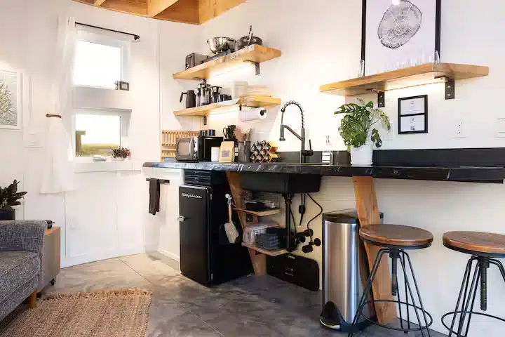 The cylindrical walls create a layout that feels unlike any other rental, but the modern, minimalist design makes it warm and inviting. Whether you’re reading by the window, cooking a meal in the kitchenette, or stretching out on the sofa, the silos feel like a cozy retreat built just for you.